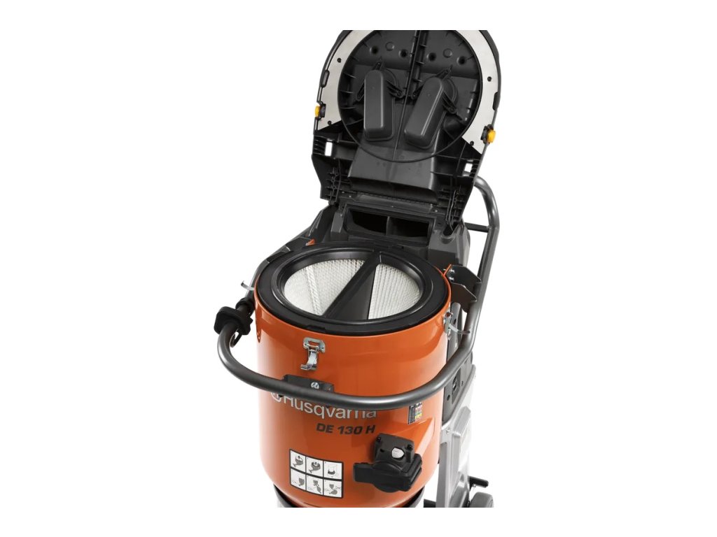 DE 130 H je vysoce produktivní jednofázový vysavač prachu H/HEPA určený pro náročné aplikace, jako je příprava podlah, broušení, tryskání a v kombinaci s