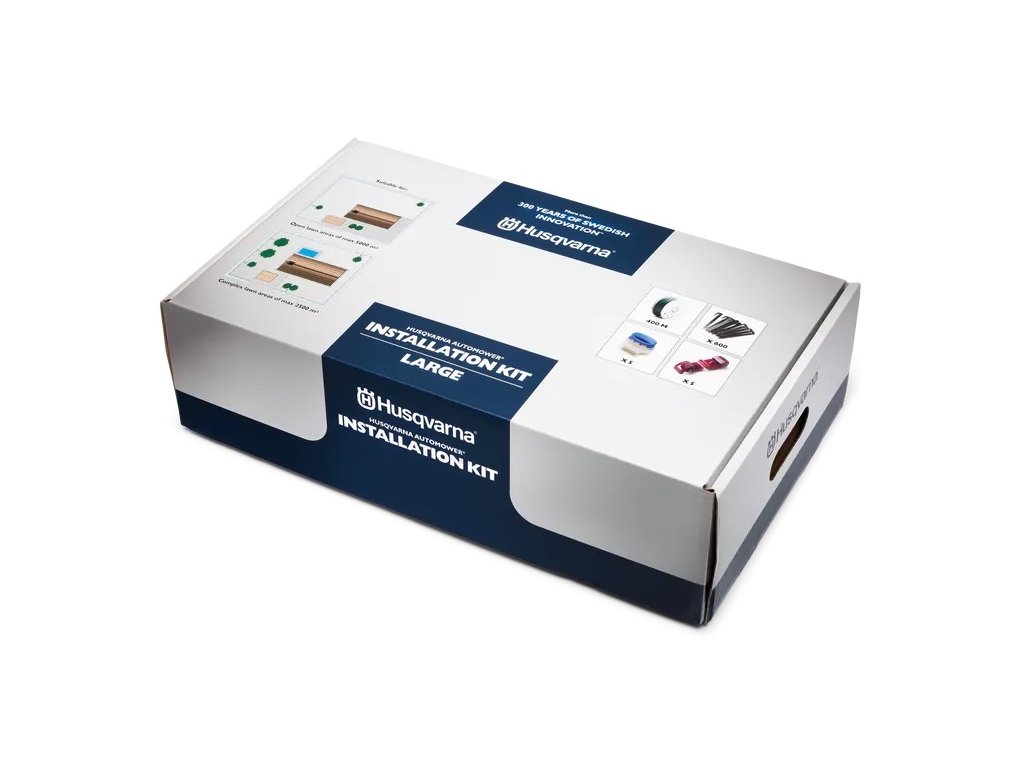 Velká sada pro instalaci se skládá z vodiče smyčky, skob, spojek a konektorů v různém počtu a délkách odpovídajících velikosti vaší zahrady. Velká sada - vhodná pro otevřené travnaté plochy o max. rozloze 5000 m² nebo složité travnaté plochy o max. rozloze 2500 m². Velká sada obsahuje 400 m vodiče smyčky / 600 ks skob / 5 ks spojek / 5 ks konektorů.