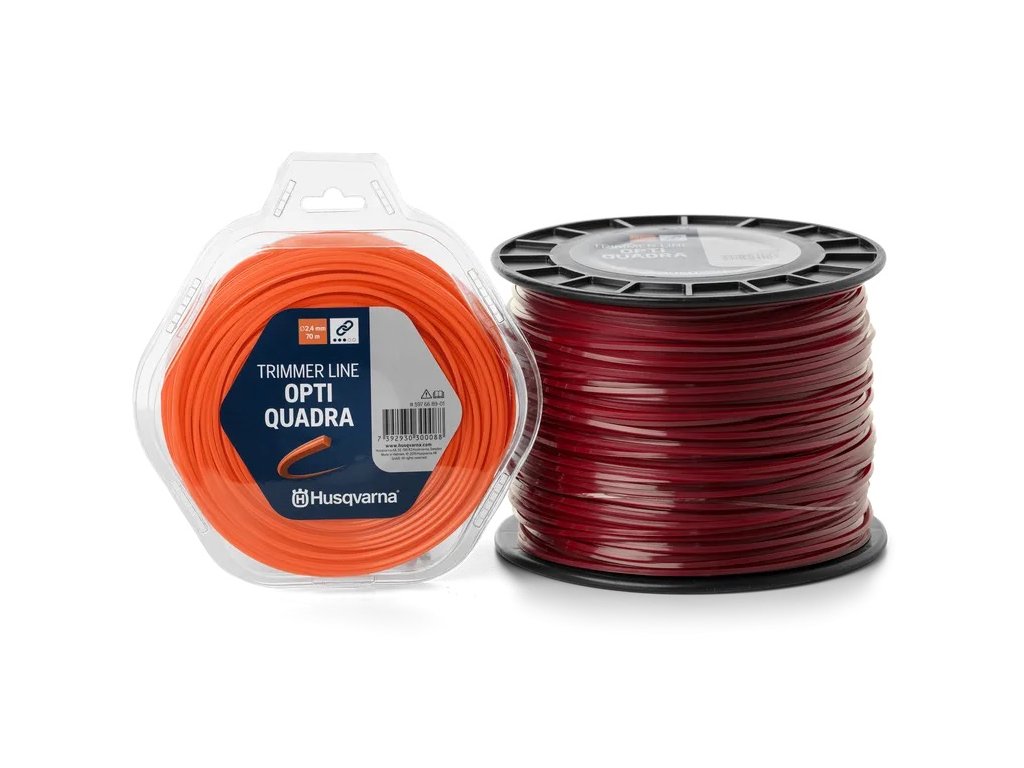 Vyžínací struna Opti Quadra Ø 2,4mm/210m. Univerzální vyžínací struna se čtvercovým profilem. Ostré hrany poskytují vynikající řezný výkon, zejména při vyžínání husté a hrubé trávy. Vhodná pro všechny strunové hlavy.